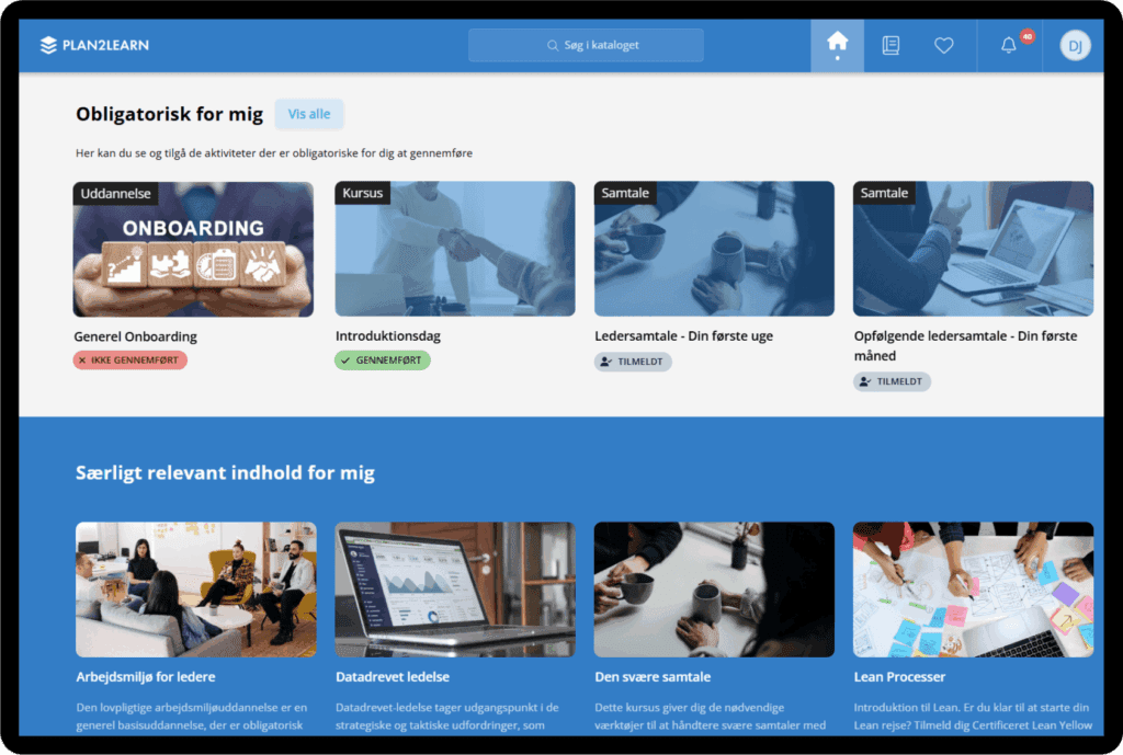 Med plan2learn er det nemt at udvikle, levere og administrere digital træning i din organisation. Uanset om du arbejder med onboarding, compliance, kompetenceudvikling eller efteruddannelse, får du en fleksibel og automatiseret løsning, der sparer tid og ressourcer.